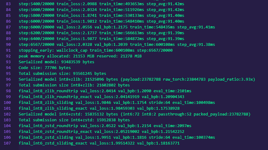 That kind of detail ended up mattering a lot. It was not enough to ask whether int6 or int8 was better in isolation. The right question was which representation produced the best end-to-end tradeoff once quantization error, storage layout, and final compression were all taken into account.